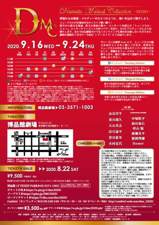 DMCセット券(3公演+公演パンフレット付)28,500円(FC先行受付、博品館1F TICKET PARKのみ取扱)